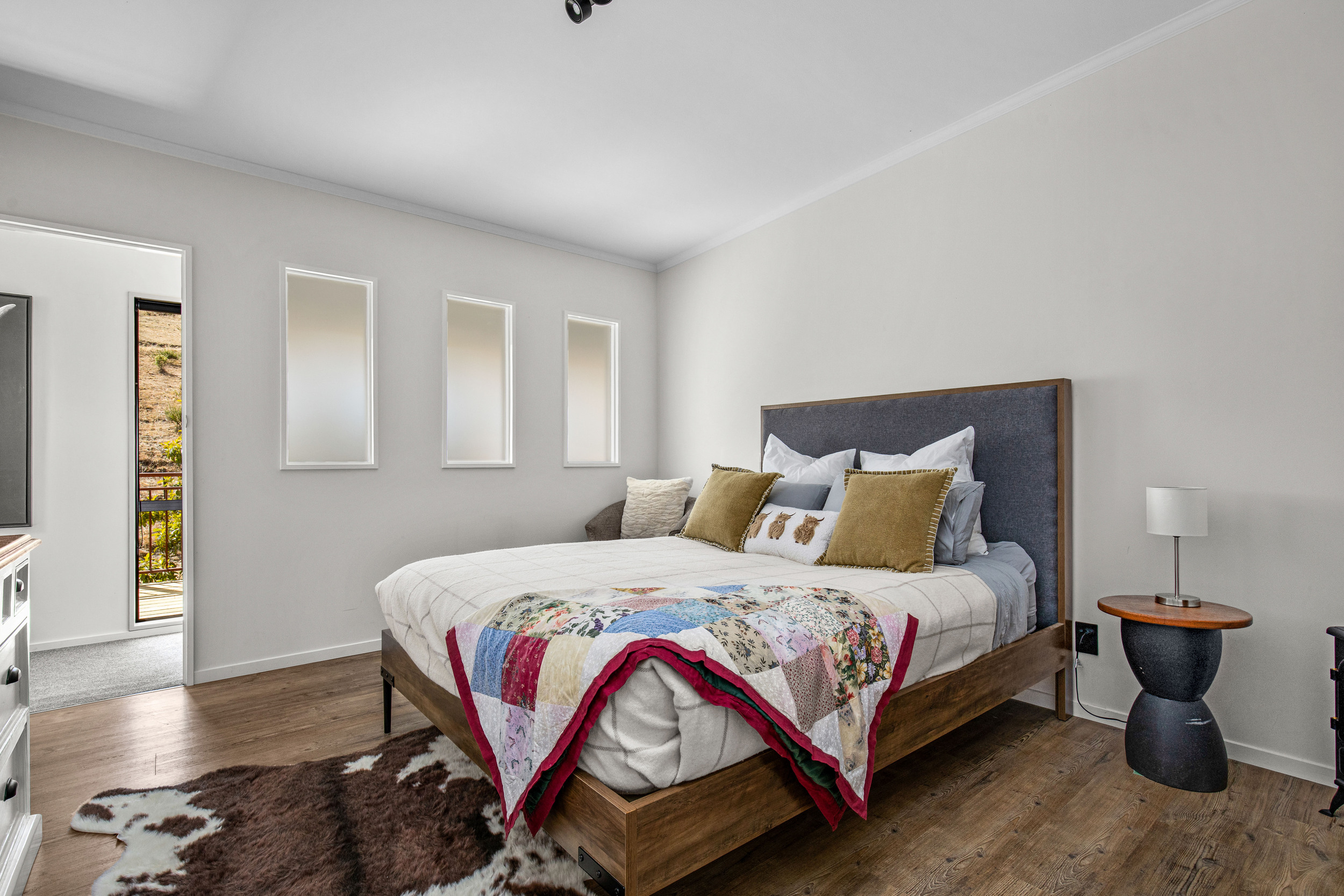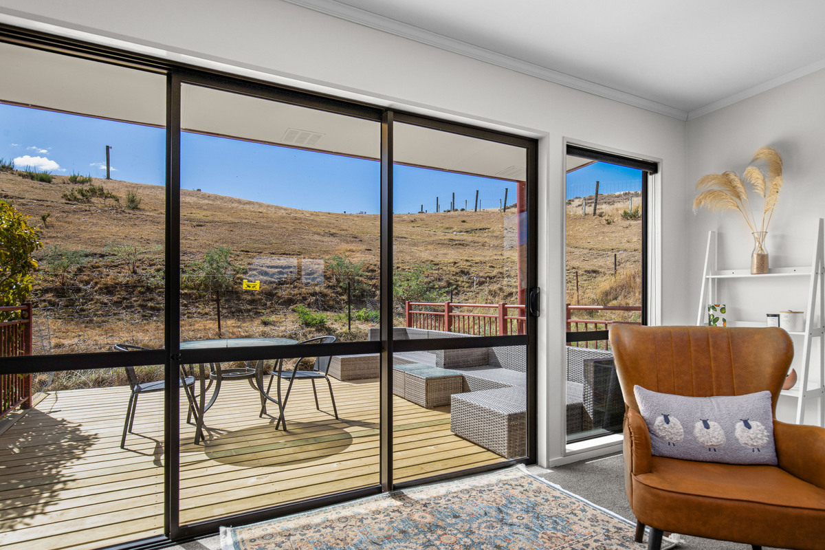 Designed for real country living rather than just the look of it, this modern four-bedroom home offers serious flexibility. Downstairs, three bedrooms share a near-new bathroom with the small luxury of underfloor heating, while the open-plan kitchen, dining and living space centres around a wood fire with heat transfer — warm, welcoming, and practical.
