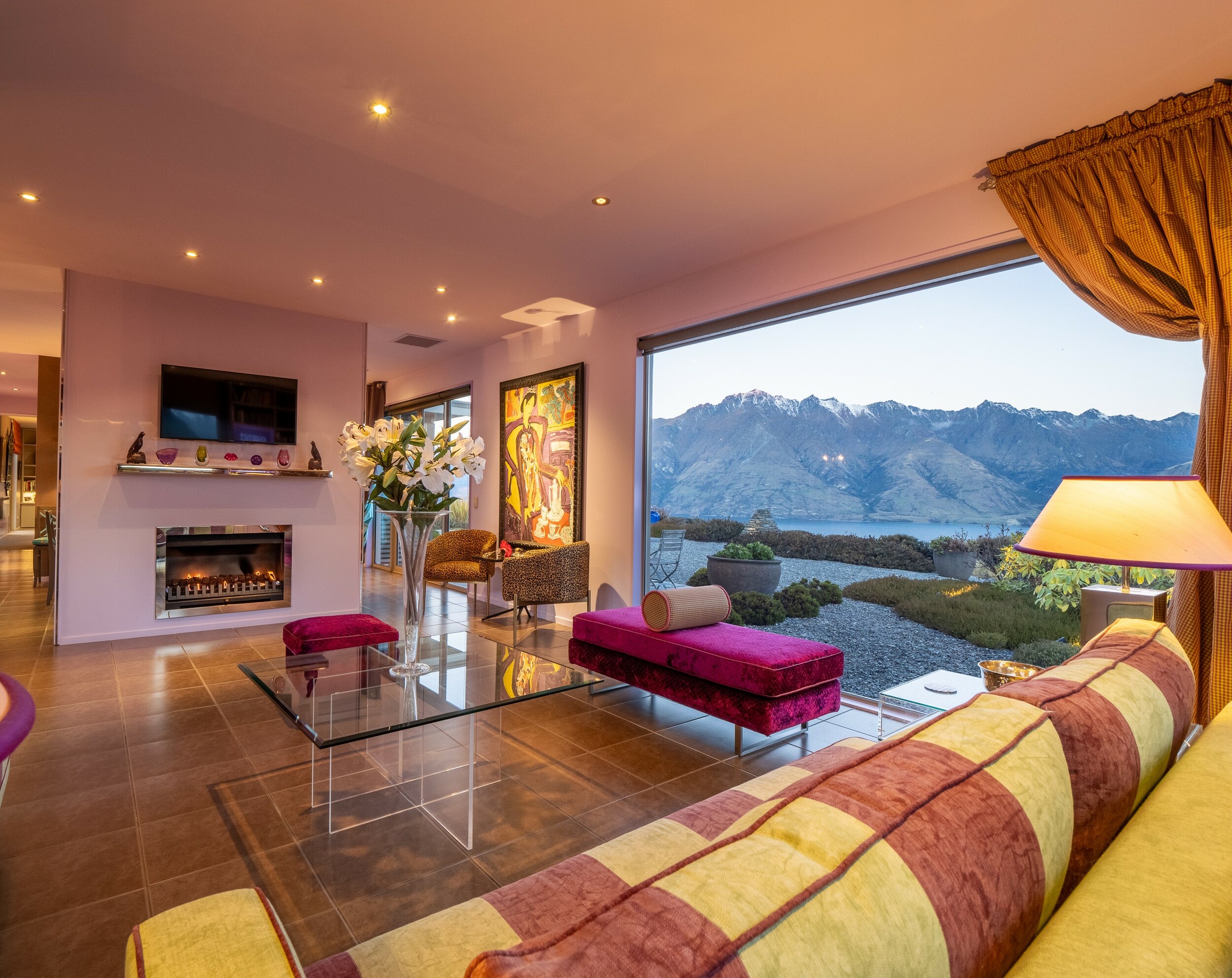 Completed in 2006, the home captures sun all day. The interior is vibrant with bold colours, art and sculpture – capturing panoramic lake and mountain views from every window. After almost 20 years of ownership and now retired, our husband-and-wife vendors have decided to downsize and relocate to be closer to family.